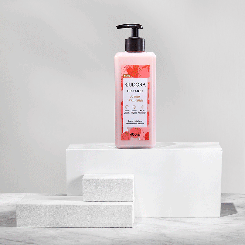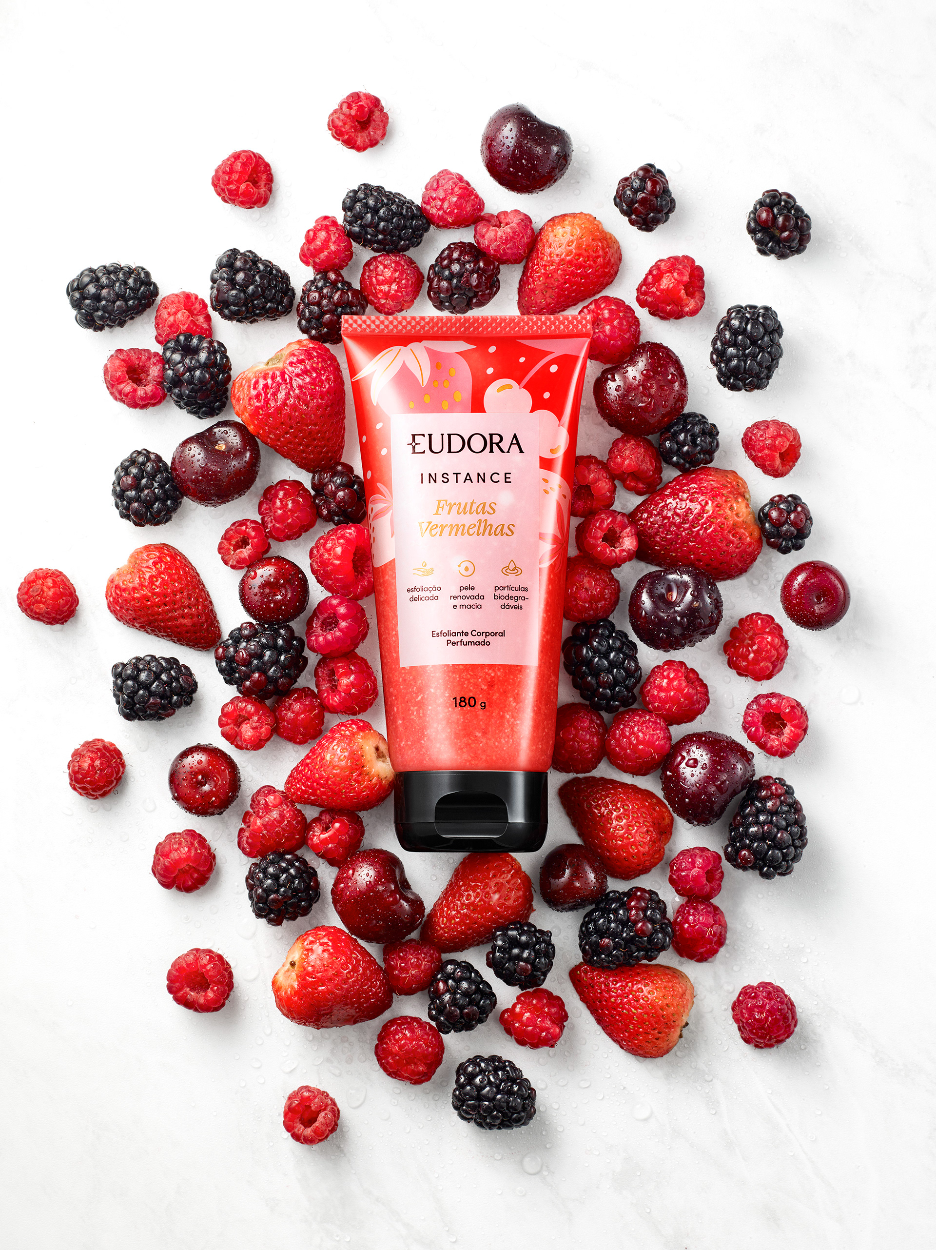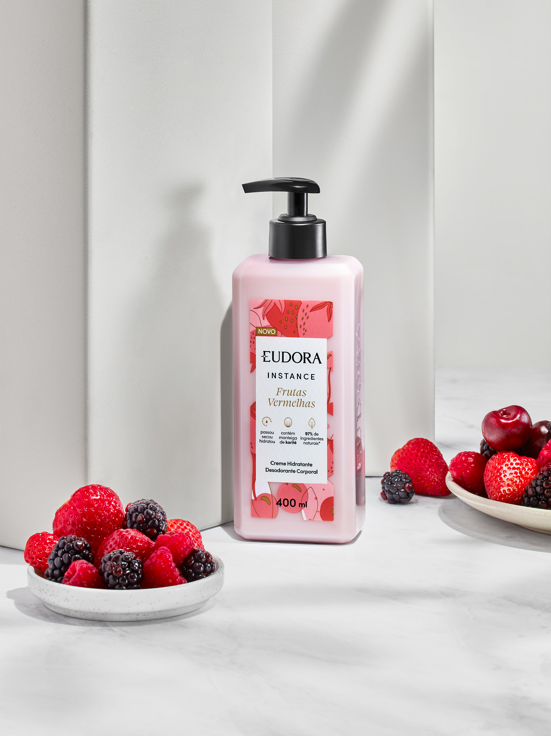 Fotos still para campanha de lançamento das novas embalagens de Eudora Instance, linha de produtos para cuidado corporal da marca.