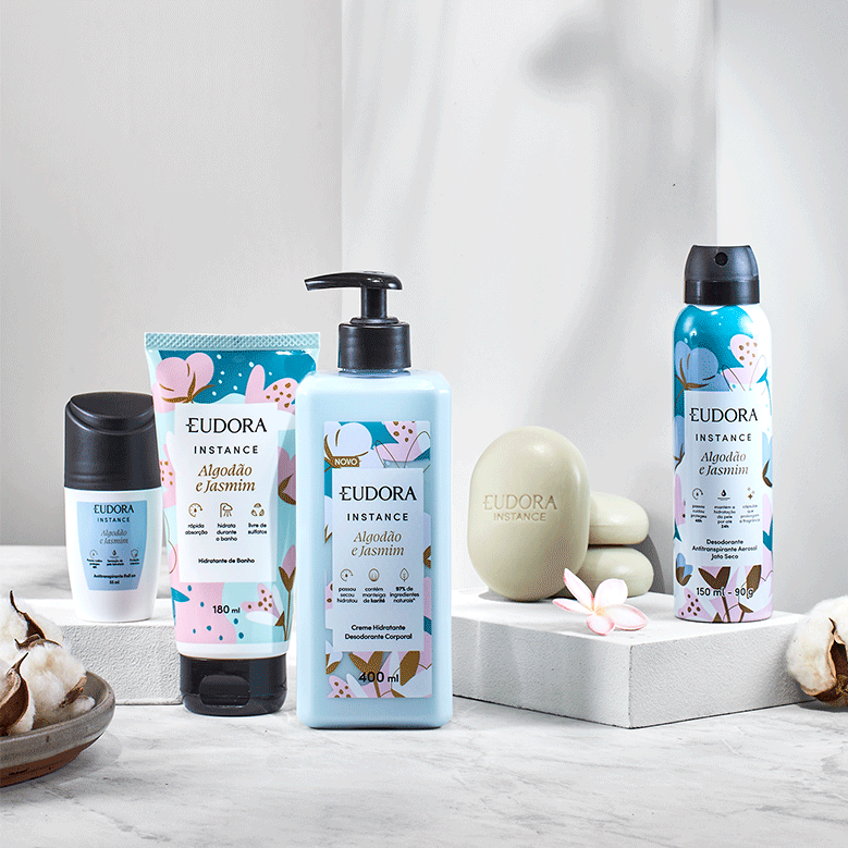 Still photos for the launch campaign of the new Eudora Instance’s packaging, the brand's line of body care products.